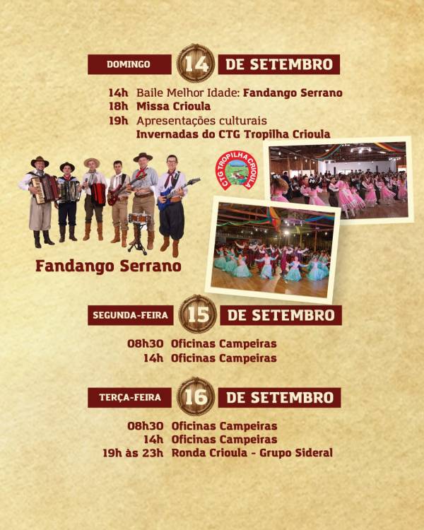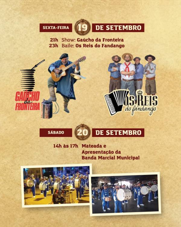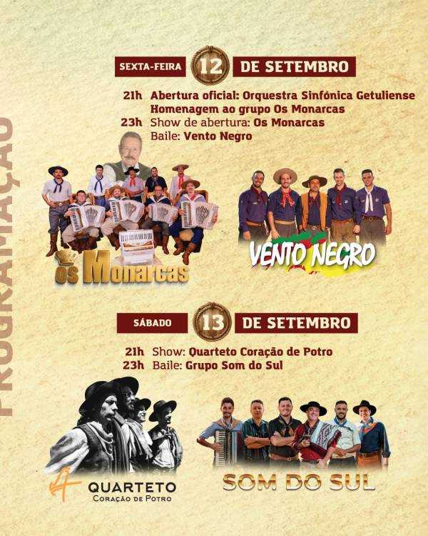 Confira tudo e prepare seu chimarrão, a festa vai ser linda!